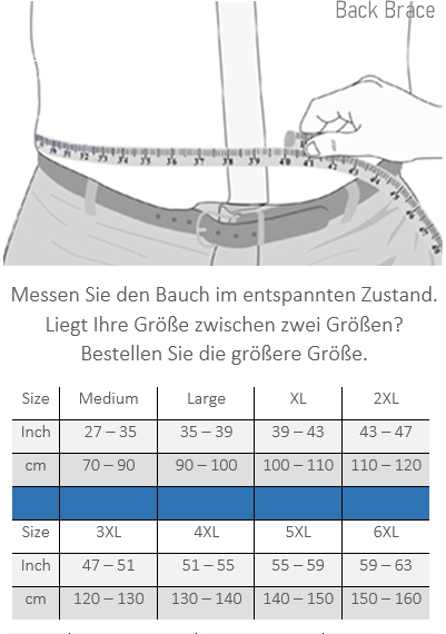 Für medizinische Beratung zum Tragen einer Rückenbandage empfehlen wir, einen Arzt oder Therapeuten zu kontaktieren.