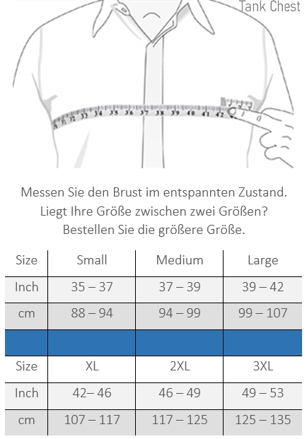 Messen Sie Ihre Brust in entspannter Haltung. Wenn Sie zwischen zwei Größen liegen, wählen Sie die größere Größe.