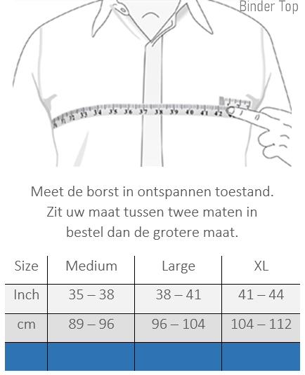 Bekijk ook onze andere shapewear voor de borststreek of ontdek de Chest Binder, een model dat vergelijkbaar is met de Binder Top maar dan in een 3 maten verstelbare uitvoering.
