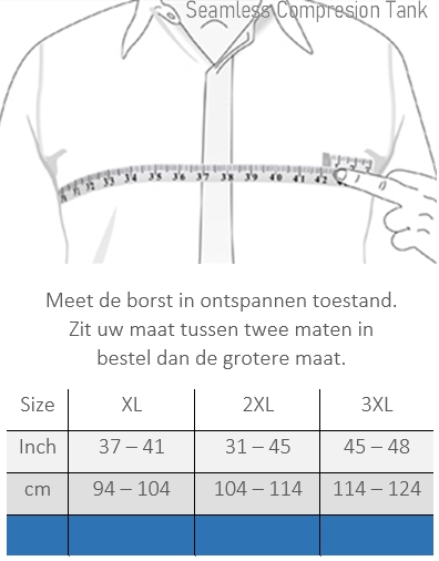 Seamless Compression Tank Naadloos compressie technologie Diep uitgesneden hals. Onzichtbaar onder kleding Optimaal draag comfort. Sterke ademende stof. Direct een slanker uiterlijk. Biedt ultieme ondersteuning Extra lang en grote maten Materiaal: Nylon / Spandex |