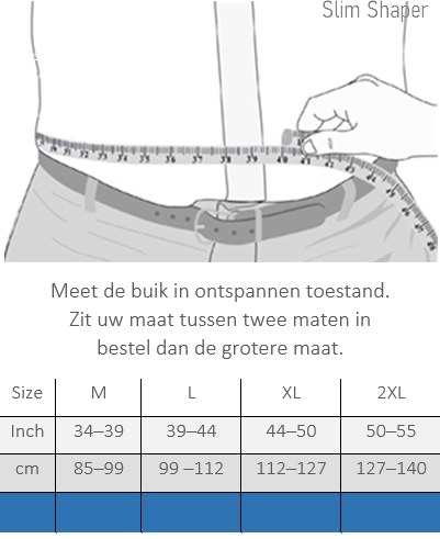 Meet je buik in ontspannen toestand. Zit je tussen twee maten in, kies dan de grotere maat voor optimaal comfort.