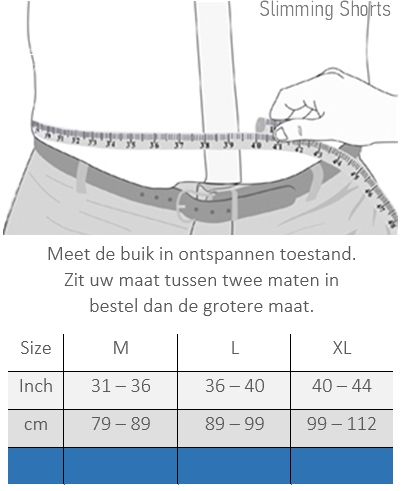 Slimming Shorts Ultieme figuurcorrigerende boxershort. Met een sterke buik/ tailleband. Dubbele siliconen strip die afzakken tegengaat. Sterke, vormvaste, ademende en vochtregulerende stof. Comfortabel en ondersteuning zonder knelling. Plat gezoomde naden onzichtbaar onder kleding laat u er direct slanker uitzien. Materiaal: Nylon / Spandex |